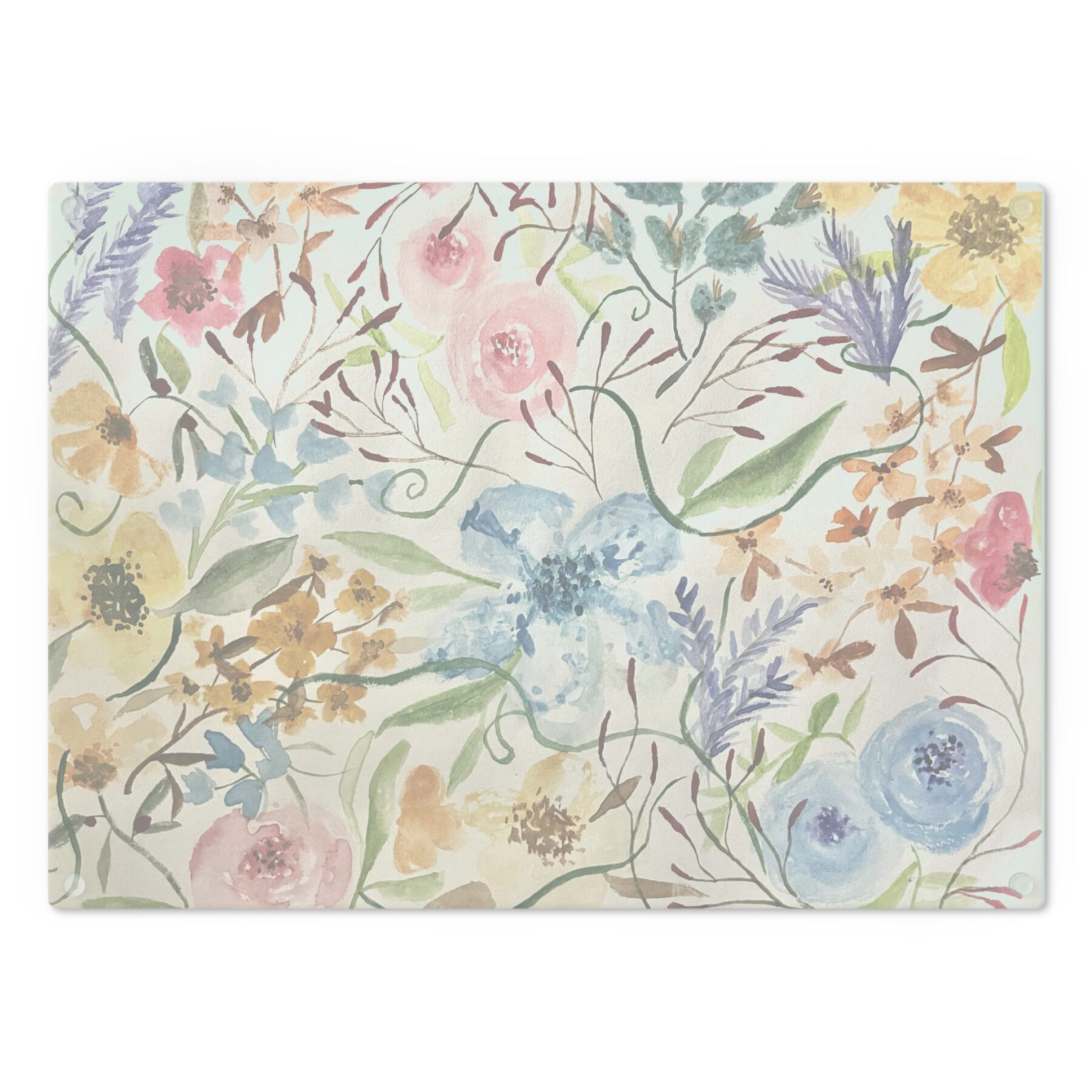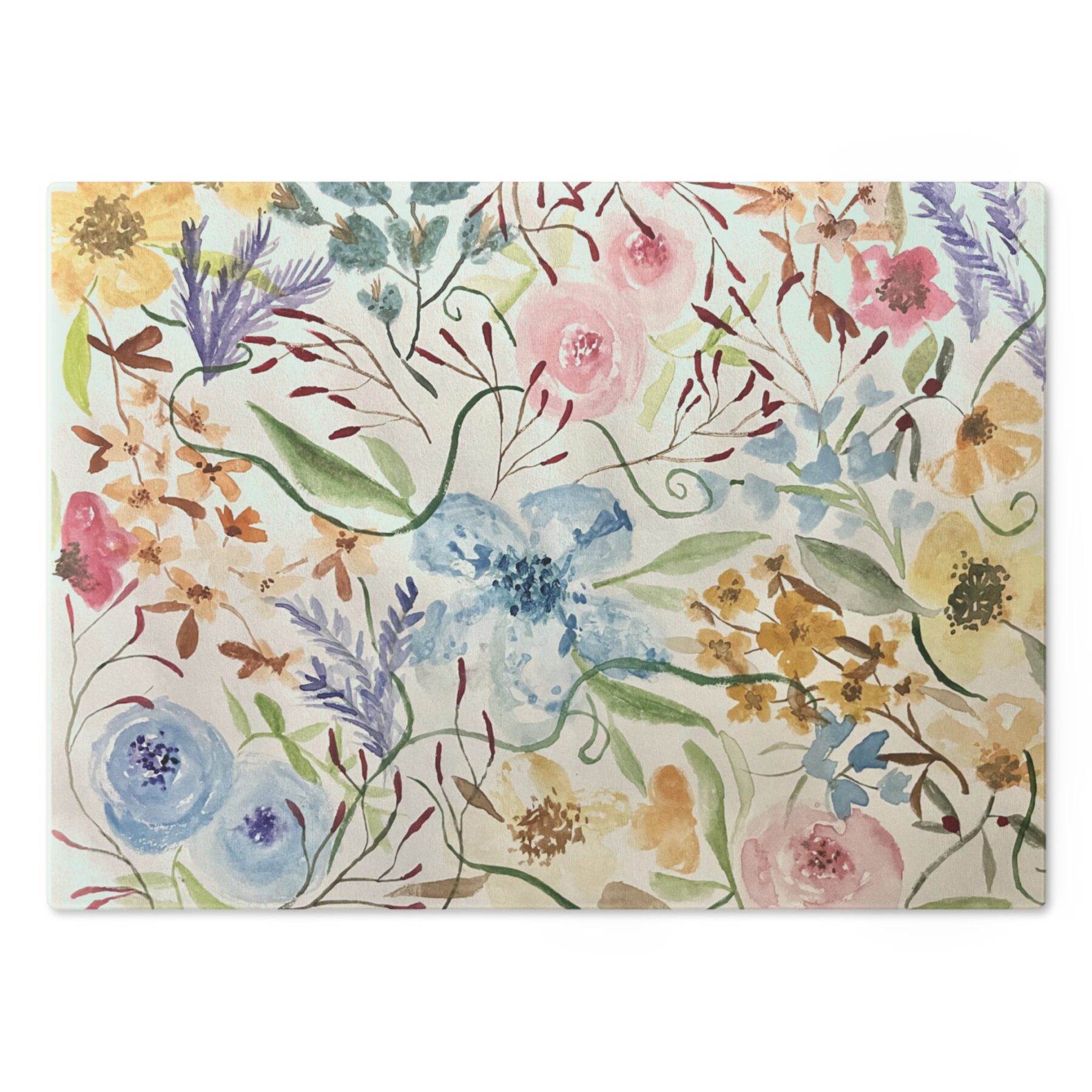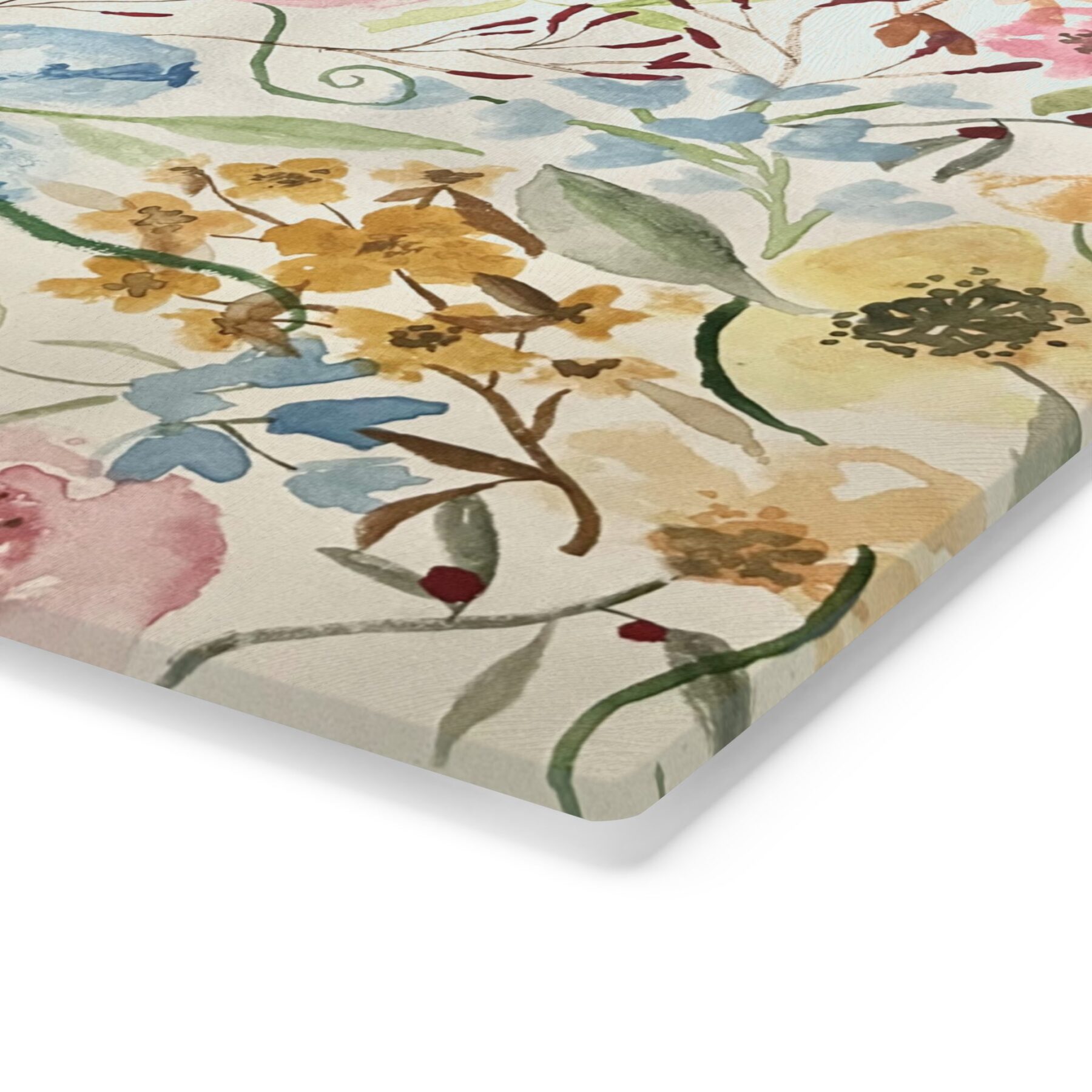 Elevate your kitchen decor with this floral painting cutting board. Suitable for dishwasher use, this tempered glass cutting board is not only stylish but also sanitary. The 4 rubber dots keep the board stable while preparing your favorite dishes.